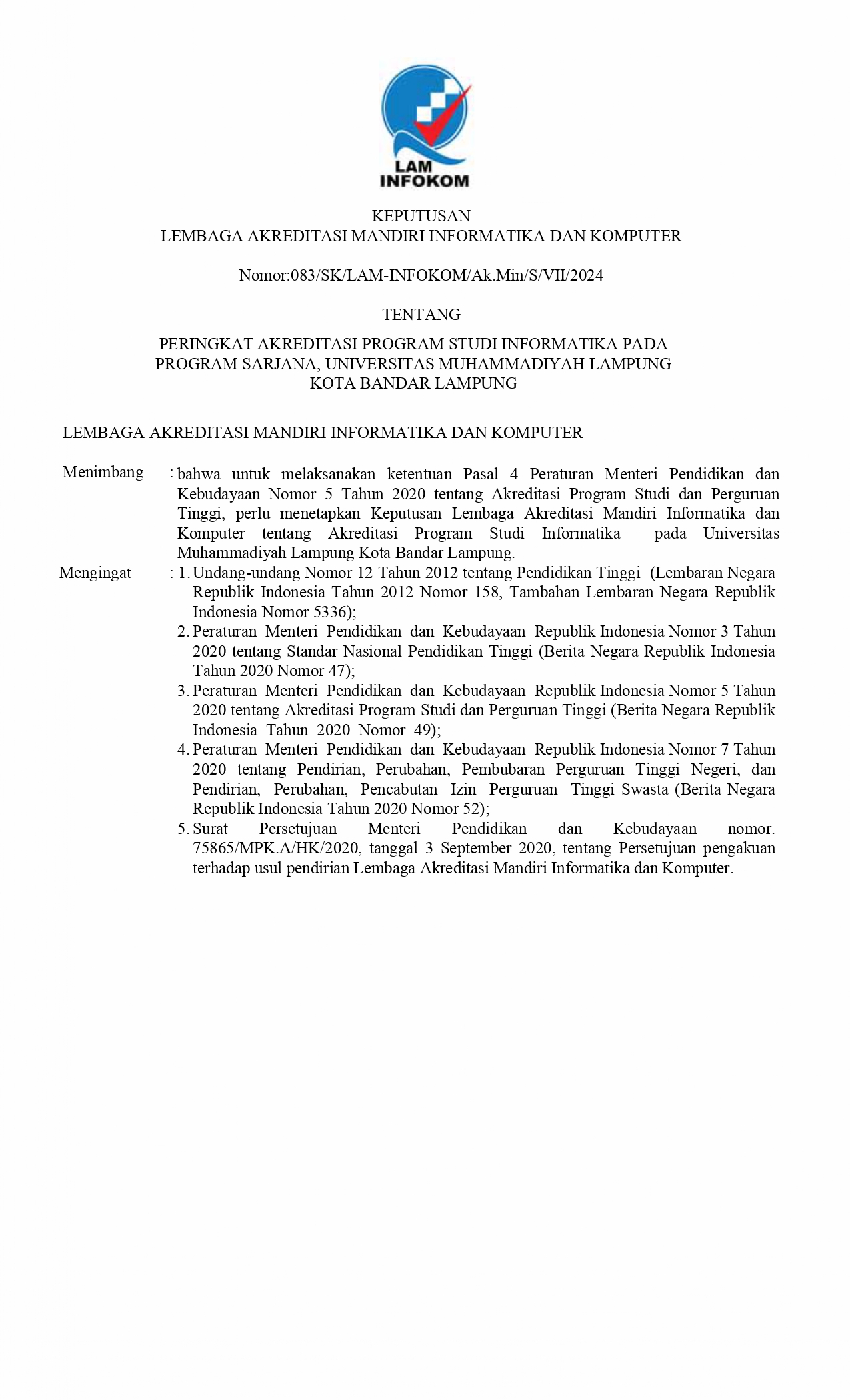 Akreditasi Prodi Informatika